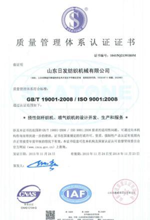 Kasım 2015’te RIFA, GB/T19001-2008 ve ISO9001:2008 kalite yönetim sistemi tarafından onaylandı.