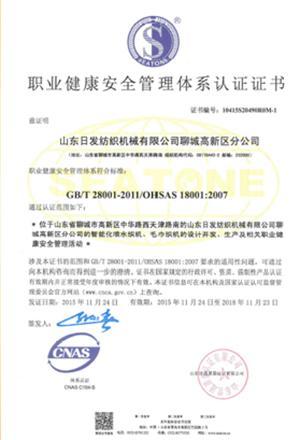 Kasım 2015’te RIFA, GB/T 28001-2011/OHSAS 18001:2007 iş sağlığı güvenliği yönetim sistemi tarafından onaylandı.